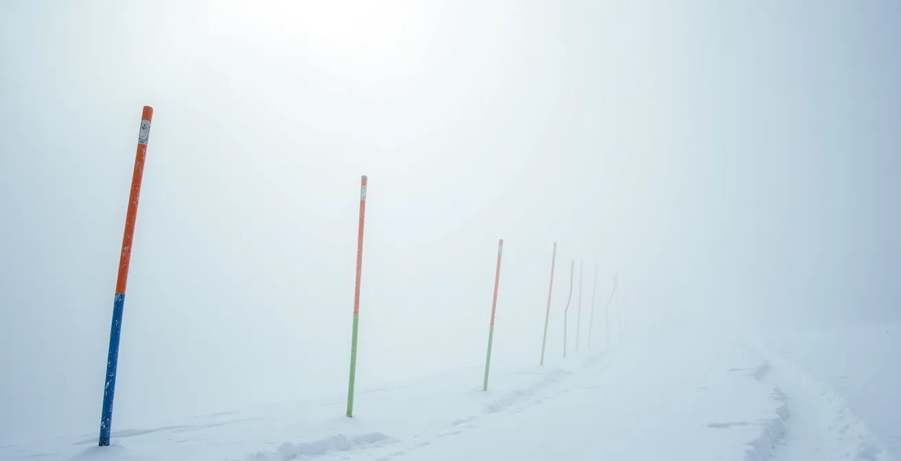 Se retrouver enveloppé par un brouillard soudain sur les pistes est une expérience qui transforme rapidement le plaisir de la glisse en une angoisse primale. La visibilité tombe à quelques mètres, les repères familiers s’effacent, et chaque descente devient une incertitude. Face à cette « purée de pois », l’instinct premier est de suivre vaguement les piquets colorés en espérant retrouver son chemin. Beaucoup de guides conseillent simplement de ralentir et de rester prudent, des conseils de bon sens mais totalement insuffisants lorsque la désorientation s’installe.